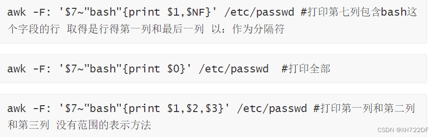 awk的工作原理 :根据指令信息,逐行的读取文本内容,然后按照条件进行格式化输出。