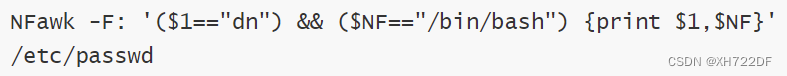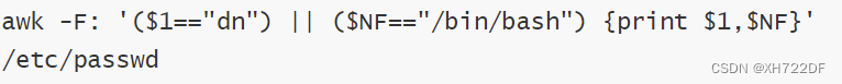 NF : 处理行的字段个数,$NF:当前行的最后一字段