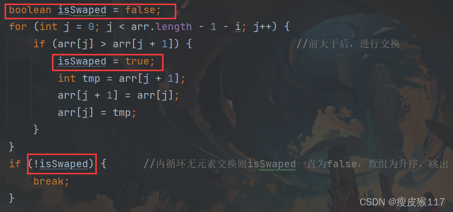 if (!isSwaped) { //内循环无元素交换则isSwaped一直为false,数组为升序,跳出