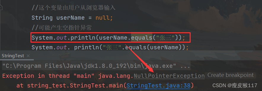 把要比较的内容"张三"放在equals的前面,可以方便处理userName为null的问题。