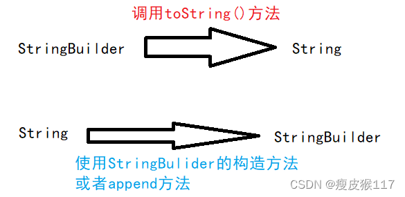 String类转换为StringBuilder类的两种方法://方法1 StringBuilder sb = new StringBuilder("hello"); //方法2 sb.append("hello");StringBuilder类转换为String类的方法: