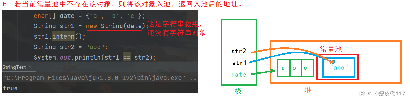 3. str1.intern; 将普通字符串对象移动入池,在常量池中保存"abc"。
