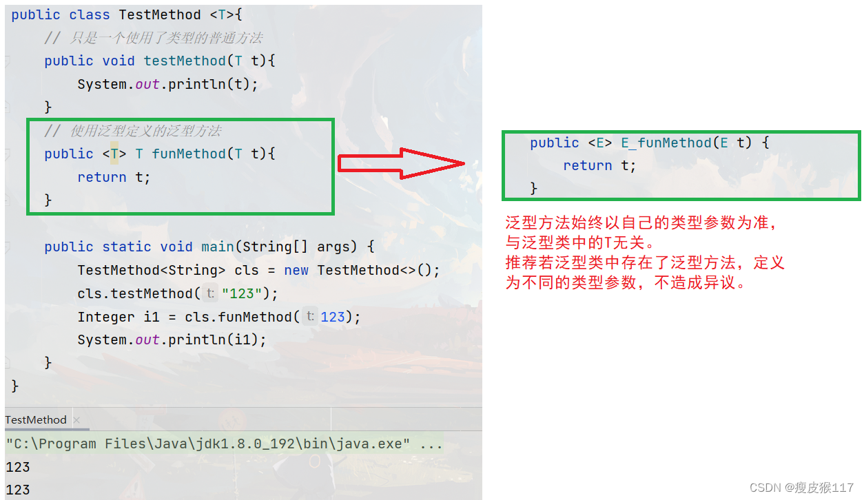 泛型方法始终以自己的类型参数为准,与泛型类中的T无关。