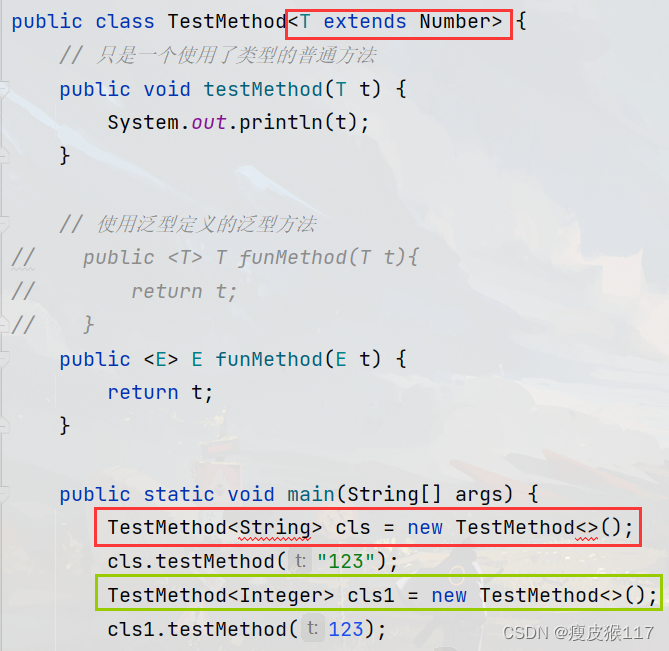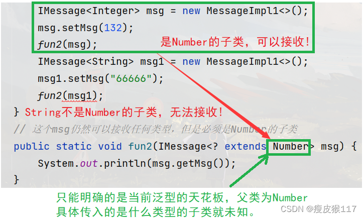 1. 可以定义在方法参数和类中,明确此时泛型的上限为某个具体的类。
