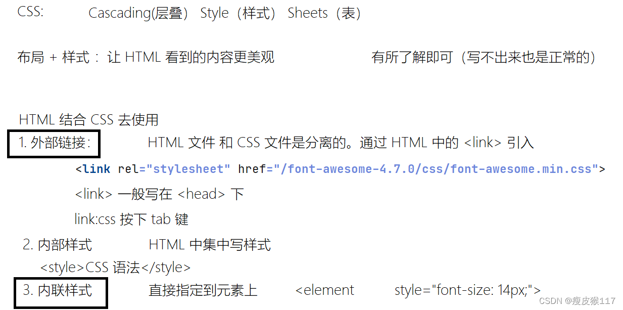 内联写法:由于就是作为元素的属性出现的,所以没有选择元素的步骤,直接指定规则即可。