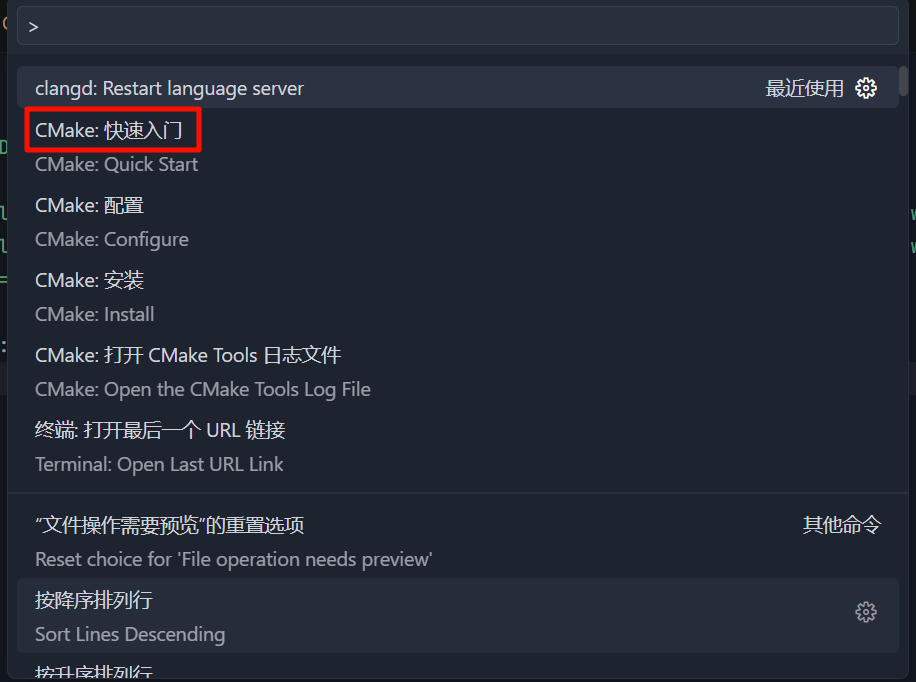 5、vscode中ctr+shift+p,输入cmake,选择cmake:快速入门命令,设置cmake预设
