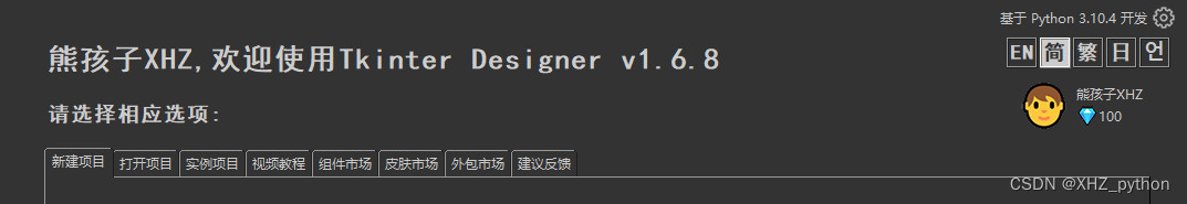 这篇教程详细介绍了TKinterDesigner的主页基本设置,包括如何注册和登录账号,以及使用组件市场、皮肤市场和外包市场的功能。同时,提到了示例项目和反馈建议的途径,帮助用户更好地理解和操作TKinterDesigner。