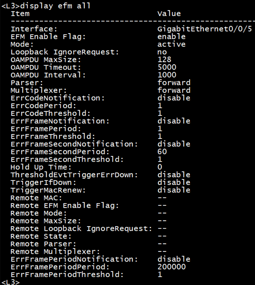 该配置实例详细介绍了如何在华为S5700交换机上验证EFM(以太网故障管理)的远端环回功能,并配置802.3ah。步骤包括交换机端口设置、流量测试、802.3ah设备添加及启动环回。通过流量验证,确保端口间的环回功能正常运行。