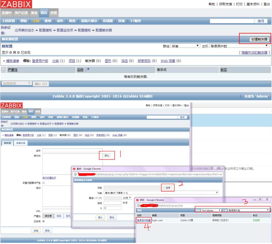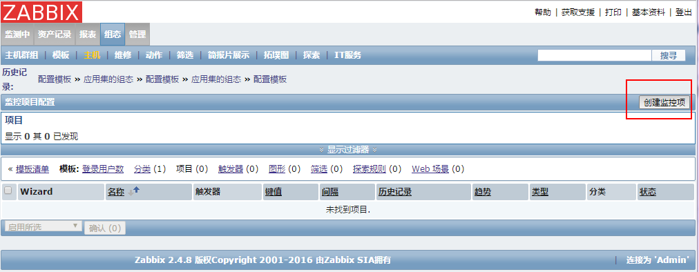 创建监控项。点击“项目”