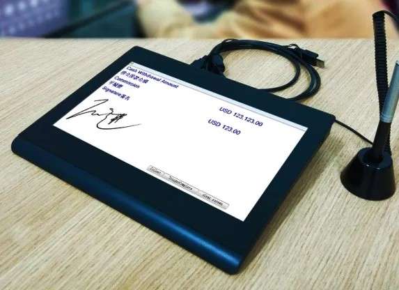 无纸化手写设备将传统的银行营业厅纸质业务受理单转变成电子工单,在业务系统中集成电子签名功能,实现营业厅业务电子化,同时又保证数据的合法性和可追溯性。企业引入无纸化有利于践行低碳生活,保护健康的生态环境;在运营上,有效解决纸质凭证所带来的管理问题、成本问题和效率问题,为金融行业提供新一代电子业务受理方式。