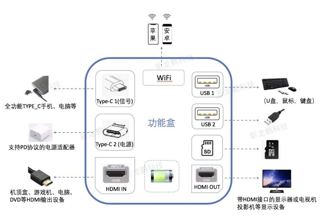 - 支持绝大多数智能手机同屏或者扩展屏。