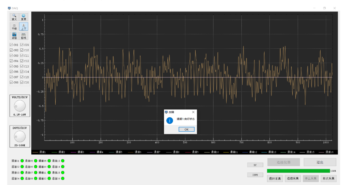 下角显示了当前各通道轴承的工作状态,绿色即无故障。从图