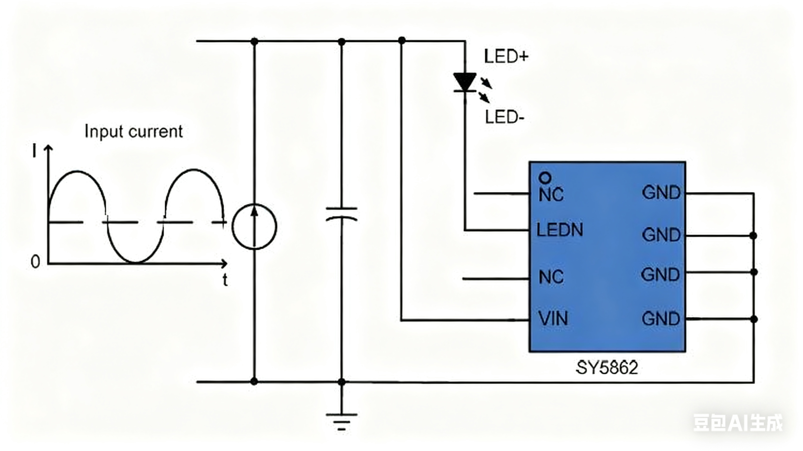 SY5862是一款自适应线性电流调节器,旨在消除针对LED照明应用的低频电流纹波。它被用作LED驱动器输出端的电流滤波器,特别是单级LED驱动器。它采用了自适应控制方案,无需额外的电路设计。提供了可靠的开路/短路LED保护和过热保护。