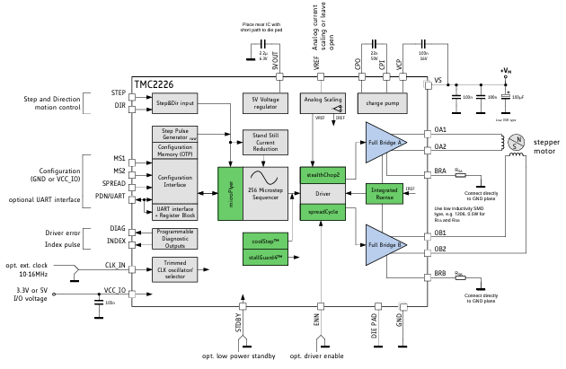 - 适用于线圈电流高达2.8A(峰值)、2A RMS的两相步进电机