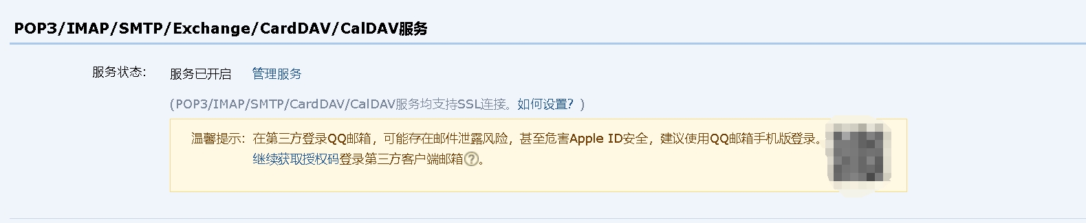 3.找到POP3/IMAP/SMTP/Exchange/CardDAV/CalDAV服务选择开启服务,扫描二维码