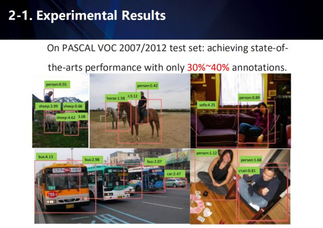 在PASCAL VOC 2007/2012结果中,我们的方法仅仅利用大约30~40%左右的标注数据,就能达到state-of-the-arts的检测性能。