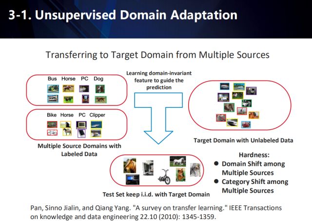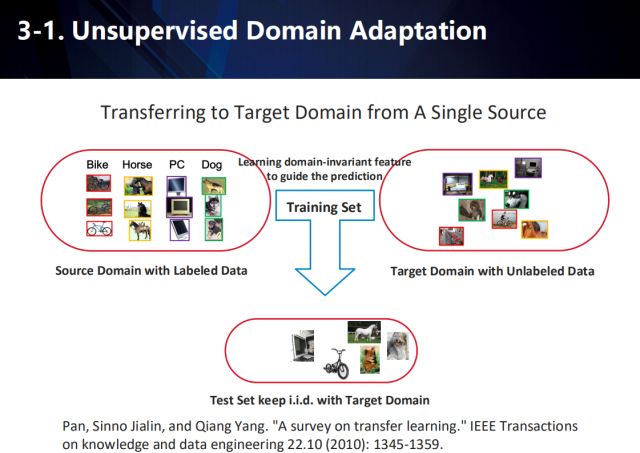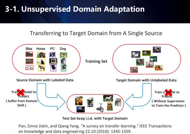 因此,需要联合有标注的源域数据和无标注的目标域数据,来学习一个与域无关的特征,来进行最终在目标域上的预测。