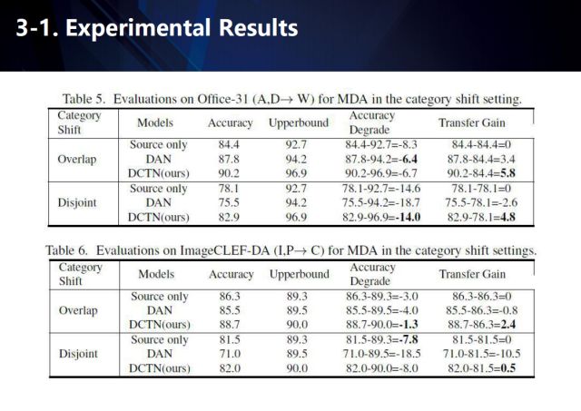 我们分别在Office-31、ImageCLEF-DA、Digit-five数据集上进行了测评,我们的方法取得了很好的结果。