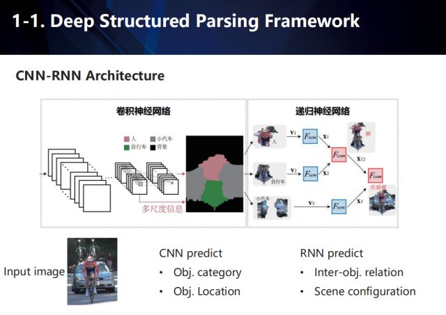 在场景解析任务中,我们通过学习图像的描述来解析场景。如图所示,利用物体定位来获取场景中具有显著性语义的物体,然后根据物体间的交互关系构建结构化场景配置。