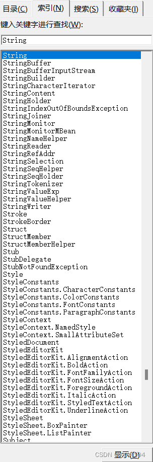 如我们索引String类。