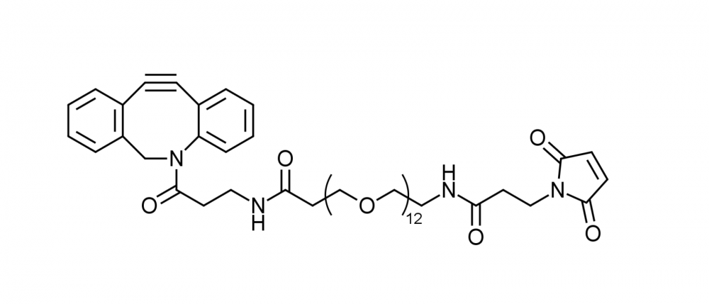 产品描述:异双功能试剂用于将含叠氮基的生物分子转化为TCO修饰的生物分子。TCO-PEG12-DBCO可作为叠氮-四嗪杂双功能交联剂,用于共价连接叠氮-四嗪修饰肽或生物聚合物。
