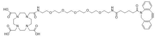 产品简介:DOTA-PEG5-C6-DBCO是一种含有DOTA和DBCO部分的PEG连接物。DBCO因其高应变能而用于化学反应。DOTA基团可以电离,并且容易螯合二价和三价阳离子。DOTA也可用于成像诊断技术。