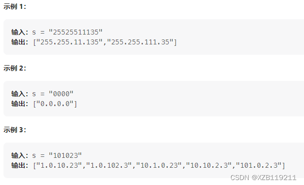 给定一个只包含数字的字符串 s ,用以表示一个 IP 地址,返回所有可能的有效 IP 地址,这些地址可以通过在 s 中插入 '.' 来形成。你 不能 重新排序或删除 s 中的任何数字。你可以按 任何 顺序返回答案。