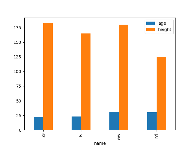 df.plot(kind='bar', x="name") # 图表直接规定x轴y轴