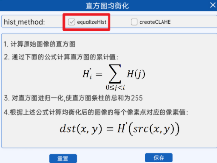 选择hist_method(直方图均衡化方法)中的equalizeHist参数设置为原始的直方图均衡化算法。