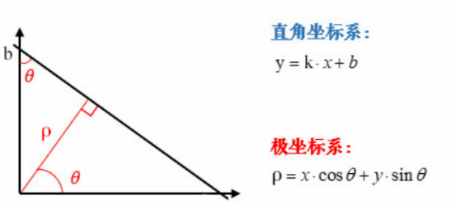对于垂直与x轴的直线,由于斜率无穷大,导致无法使用上述的空间变换。解决的方法是在原始空间中,不再使用斜率和截距表示直线,而更换为极坐标系。