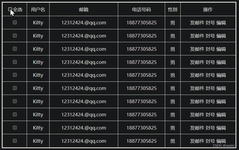 this 传入,表示这个元素 input,这样就直接拿到这个元素 getElementsByName(),通过元素的 name 属性获取所有的用户复选框- 使用