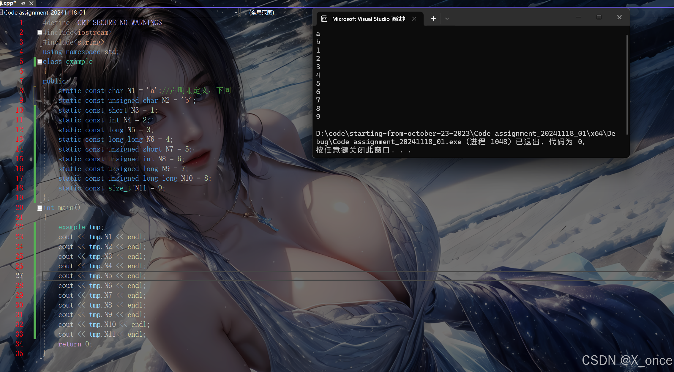 俺在【C++】类和对象3.0中介绍过static成员(静态成员)的知识,其中介绍过:静态成员变量必须在类外定义,定义时不添加static关键字,类中只是声明。其实这点是有例外的,其实static const整形变量可以不在类外面定义,在声明处给缺省值就相当于定义了,例如: