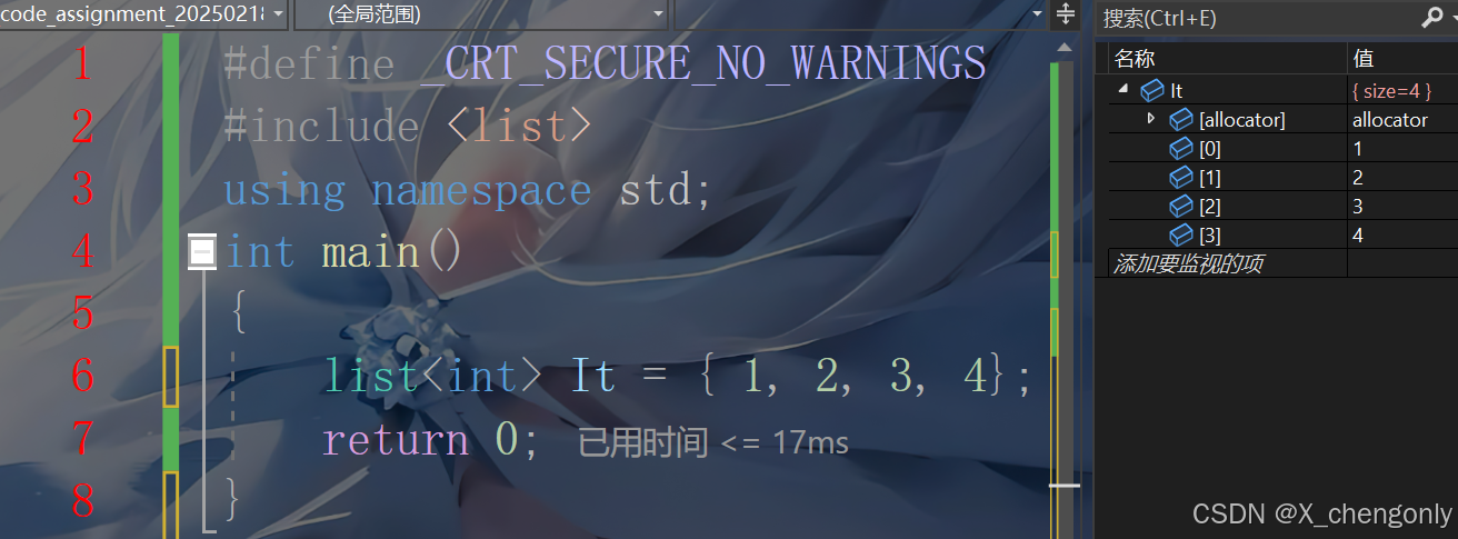 同样的,VS2022对std::list的erase进行了强制的检查,若erase后,没有更新迭代器就访问会报错,在test.cpp中: