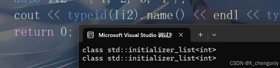 那么涉及到一个类模板initializer_list。那么针对这个知识点,简单笼统来说,C++11之后可以把花括号括起来的“集合”认为是一个initializer_list<value_type>对象,我们可以验证: