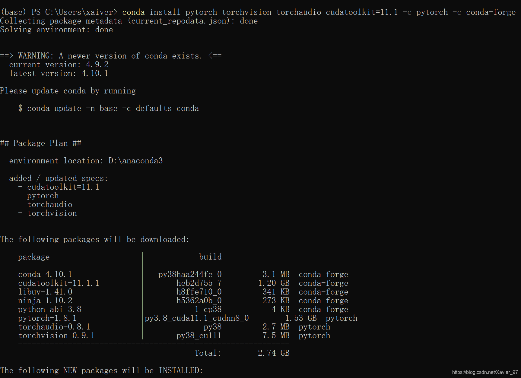 conda install pytorch torchvision torchaudio cudatoolkit=11.1 -c pytorch -c conda-forge
