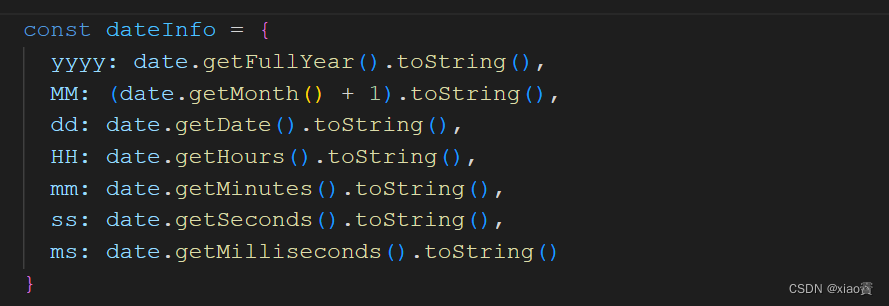 const { yyyy, MM, dd, HH, mm, ss, ms } = dateInfo