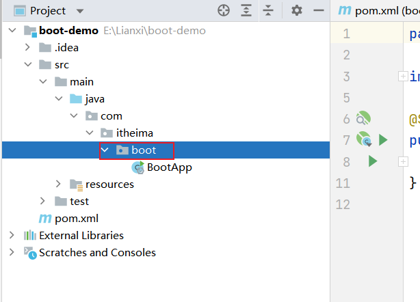 5.开始创建项目,必须在引导类所在的包创建,图中就是boot
