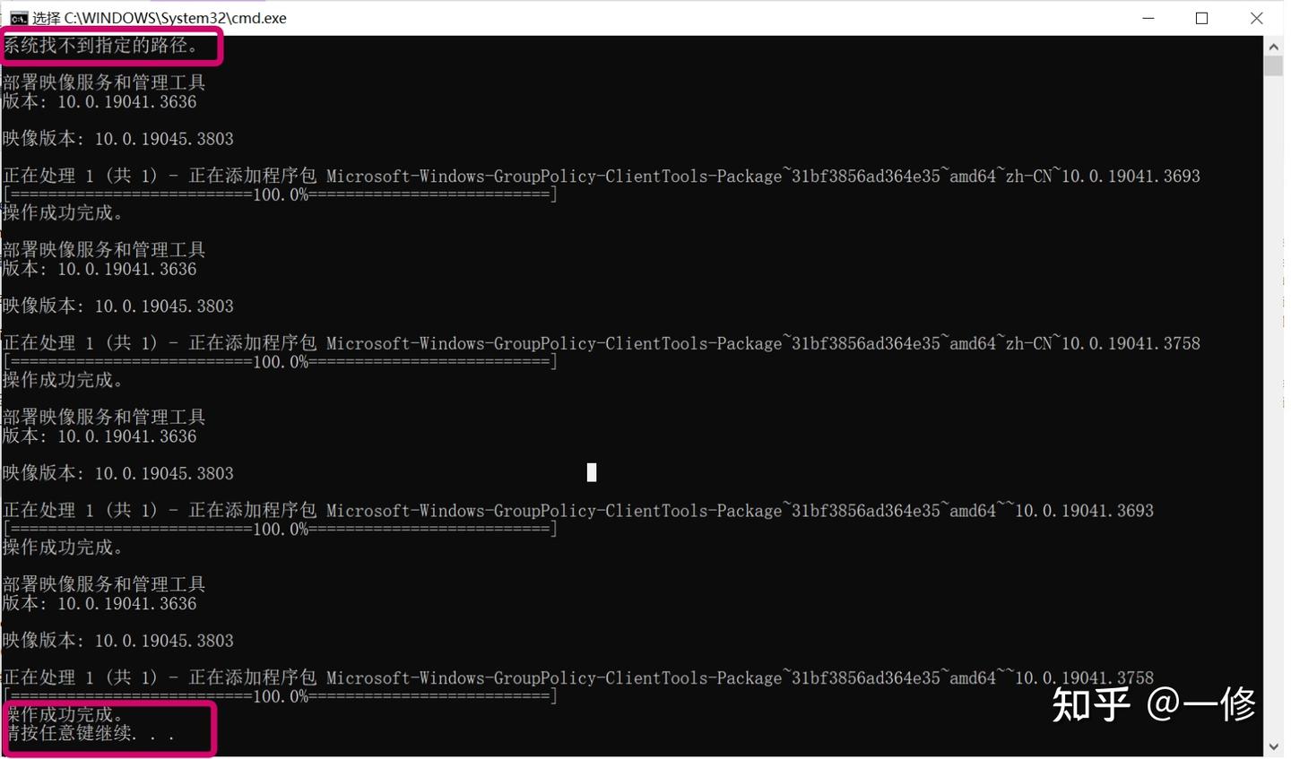 正在处理 1 (共 1) - 正在添加程序包 Microsoft-Windows-GroupPolicy-ClientTools-Package~31bf3856ad364e35~amd64~zh-CN~10.0.19041.3758