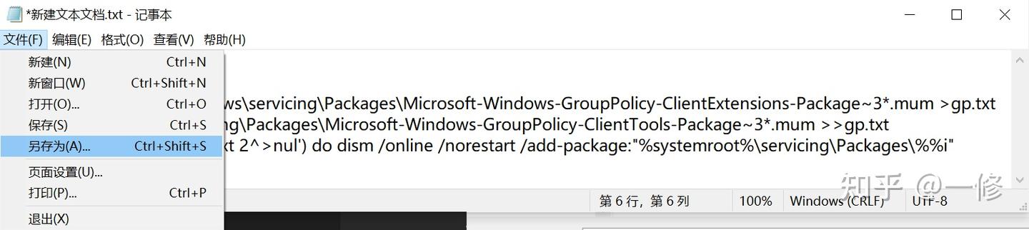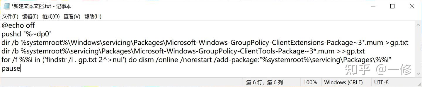 代码说明:通过dir命令遍历系统盘servicing目录,寻找组策略的配置包,找到后写入到gp.txt文件,然后通过 dism命令来安装组策略包。