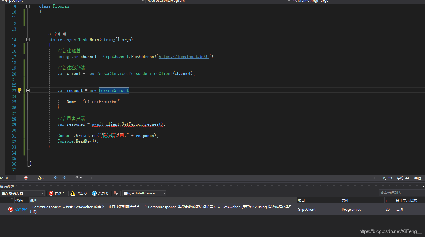 求大佬解答 PersonResponse”未包含“GetAwaiter”的定义