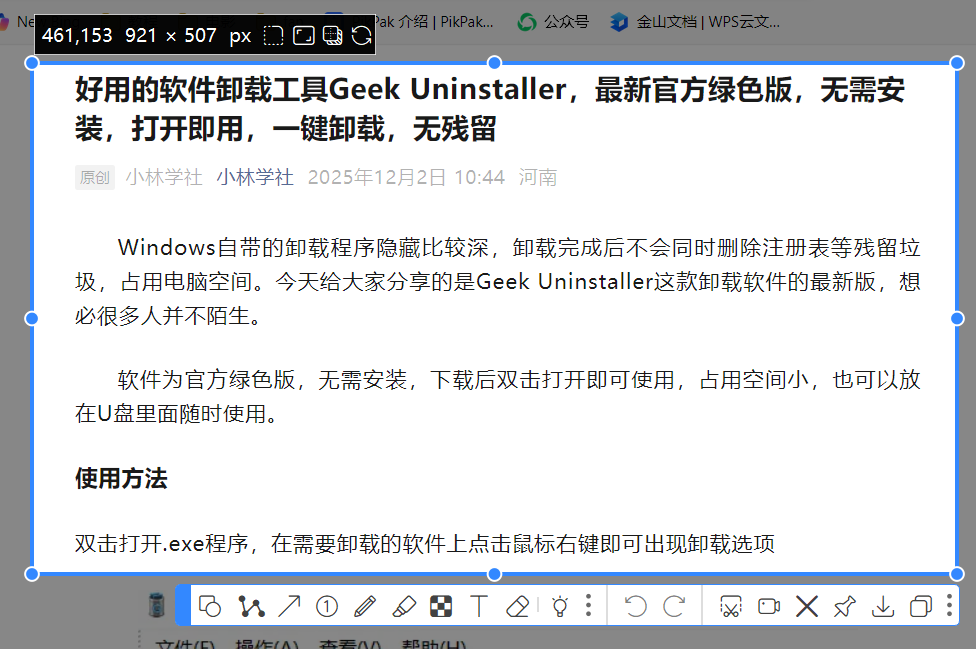 长截图也十分简单,先按快捷键Ctrl+1框选截图范围,然后点击右下方工具栏长截图按钮,然后滑动鼠标滚轮截取所需部分,同时右边会有实时预览。