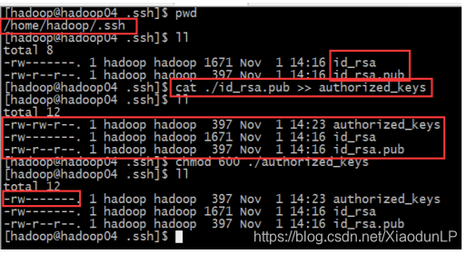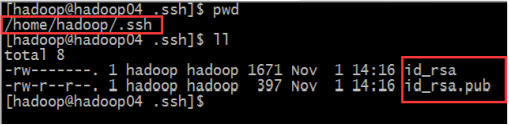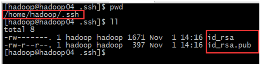 b) 之后你会发现,在/home/hadoop/.ssh 目录下生成了公钥文件
