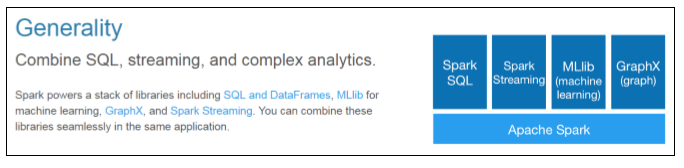 Spark 提供了统一的解决方案。Spark 统一的解决方案非常具有吸引力,毕竟任何公司都想用 统一的平台去处理遇到的问题,减少开发和维护的人力成本和部署平台的物力成本。