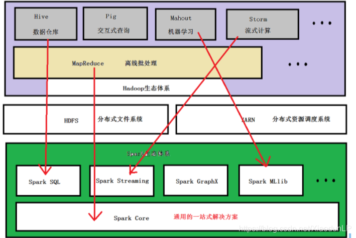 以上三者都是比较独立,各自一套维护成本比较高,而 Spark 的出现能够一站式平台满意以 上需求。