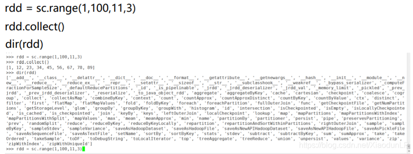 2.12 .parallelize() 使用python集合创建RDD,可以使用range函数,当然也可也使用numpy里面的arange方法来创建