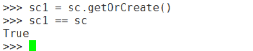 2.10 getOrCreate() 得到或者是创建一个SparkContext对象,该方法创建的SparkContext对象为单例对象。该方法可以接受一个 Sparkconf对象。