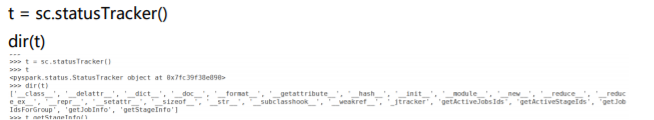 2.19 statusTracker() 方法用于获取StatusTracker对象,通过该对象可以获取活动的Jobs的id,活动的stage 的id。job的信息,stage的信 息。可以使用这个对象来实时监控作业运行的中间状态数据。