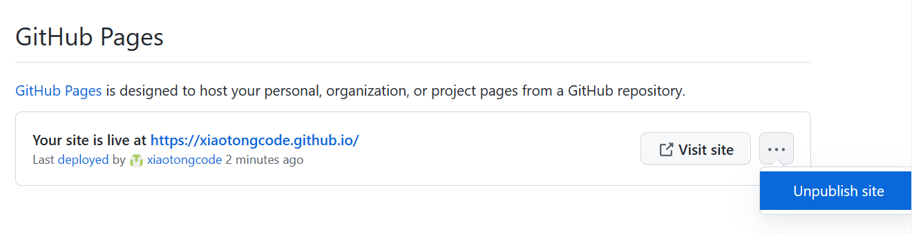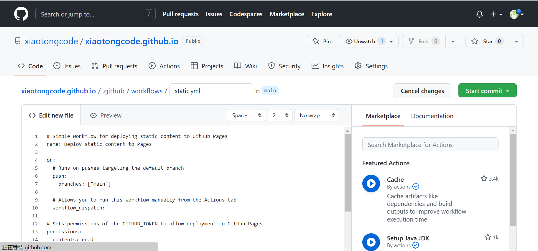 这时候,你的仓库就多了一个文件夹叫“workflows”,不要删除,等待几分钟,输入Yourname.github.io(例如我就是xiaotongcode.github.io)打开新网页,这就是你的博客啦!