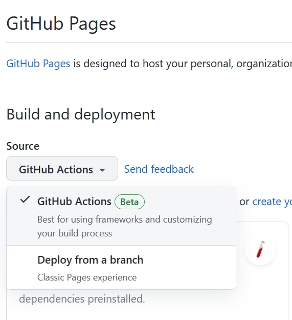 将Source改成Github Actions,再选择Static HTML(静态网页)