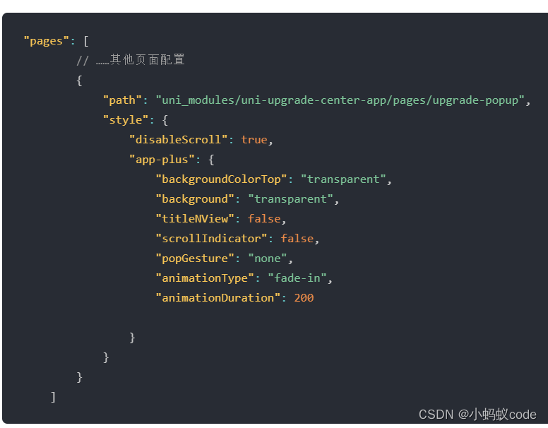 这里我检查后发现是 缺少了 官方里的这一步,需要在pages.json文件中加入以下代码。目的该文件为提示升级的页面路径。